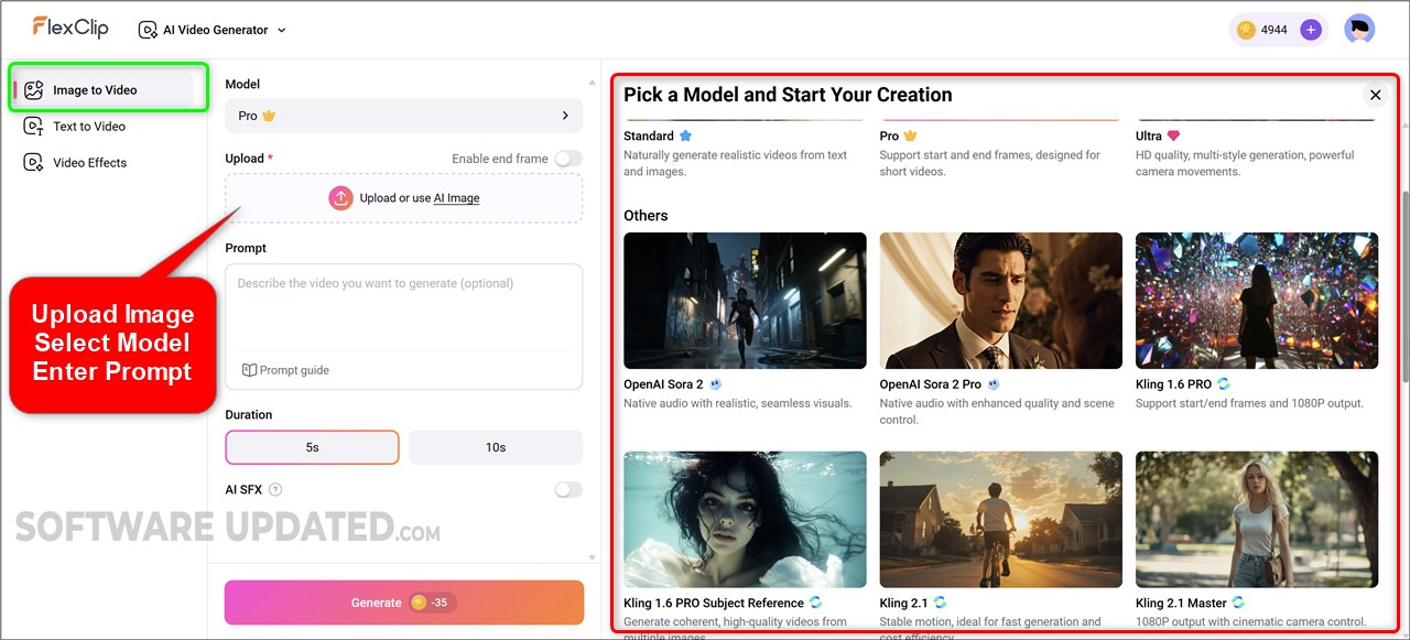 But FlexClip has now added new popular models like, Google Veo 3.1, OpenAI Sora 2 pro, and Kling 2.5 turbo.